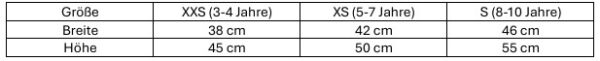 | Maat | XXS (3-4 jaar), XS (5-7 jaar), S (8-10 jaar) |